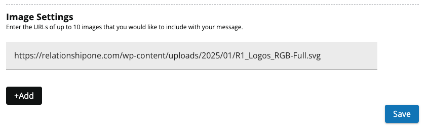 Optionally, add an image URL in the Image Settings section below your text message. The image will be passed to Twilio and added to the message as long as your twilio account is configured to do so.
